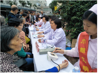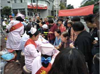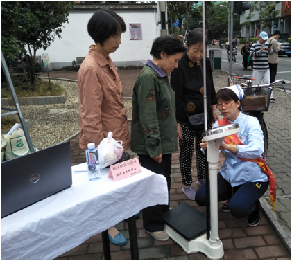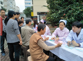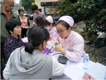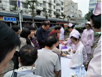 随着慢病管理的宣传力度不断加大居民最关心的自己的血糖与血压水平,因此,在由糖专组、内科一区病房护士组合的“免费测量血压、血糖”区域总是人头攒动。