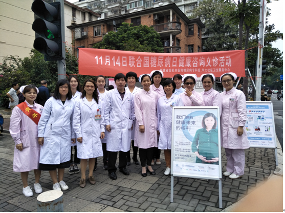 今年的11月14日是第11个联合国糖尿病日,本年的主题为“女性与糖尿病---我们拥有健康未来的权利”。糖尿病是全球第九大女性死亡的原因,每年因糖尿病死亡的女性人数达210万。目前全球有超过1.99亿女性糖尿病患者。为贯彻十九大精神,响应习近平总书记“健康中国战略” 及“优质医疗资源下基层”的号召,2017年11月14日上午护理部和糖尿病护理专科组精心策划,在内分泌专家的响应下,国产自拍av 糖尿病专科组携手华大社区卫生服务中心在华大社区举办义诊咨询活动。