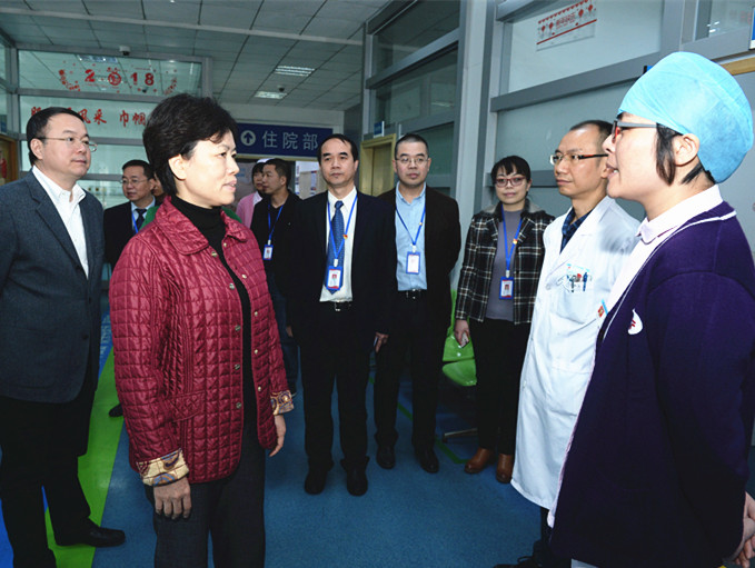 2018年2月14日上午,省卫计委主任朱淑芳、副主任陈晓春、医管局局长明强一行莅临国产自拍av慰问医务人员并指导节前安全生产工作。院领导班子成员及相关职能科室负责人陪同。