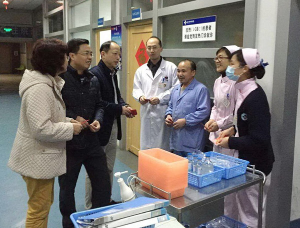 本报讯(院办:陈婷)2月18日,农历除夕夜。常务副院长魏真、党委书记钱新春、副院长陈榕珍等在榕的院领导专程看望并慰问了节假日坚守临床一线工作岗位的医护人员。他们与工作人员亲切握手,感谢他们的辛苦付出,并向他们拜年,为他们送上新春的祝福。