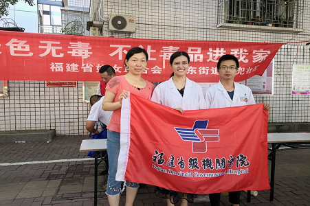 6月26日是第31个国际禁毒日,今年的宣传主题是“健康人生 绿色无毒”, 为进一步加强禁毒宣传和毒品预防教育工作,增强全民禁毒意识,国产自拍av第四党支部协同省妇联、省妇联法律服务中心、鼓东街道树兜社区、鼓东派出所等单位,在树兜社区开展“健康人生 绿色无毒 不让毒品进我家”的主题义诊活动。