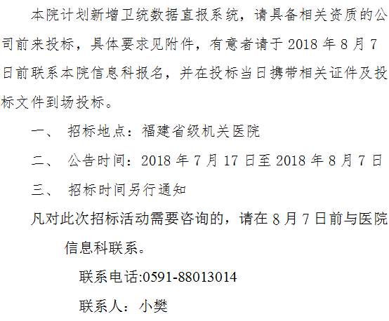 根据国产自拍av 实际工作需要,国产自拍av拟安装“国家卫生统计网络直报系统-卫统4”接口软件。
