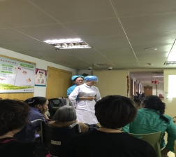 陈雪芳老师就暑期常见的一些紧急情况如“眼睛进了沙子”、“鼻出血”、“晒伤”、“蜂蜇伤”、“扭伤”、“刀割伤”、“煤气中毒”、“溺水”、“触电”、“骨折”、“烫伤”等情况做了深入浅出的分析,现场真人示范各种应急措施,并针对患者及家属的疑问做了一一解答。