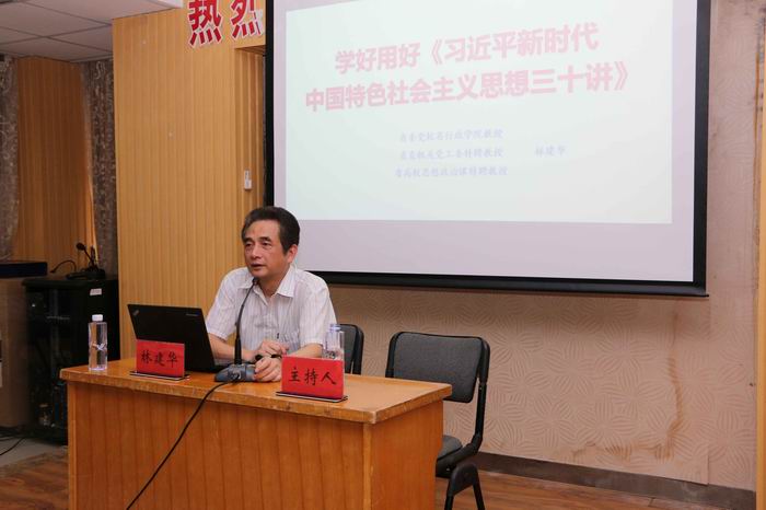 培训讲座邀请福建省委党校、福建省行政学院哲学教研部林建华教授、博士,为广大党员干部作了题为“学好用好《习近平新时代中国特色社会主义思想三十讲》”的培训讲座。林建华教授结合《习近平新时代中国特色社会主义思想三十讲》的纲领提要,深入浅出地为大家介绍和解读习近平新时代中国特色社会主义思想的形成、重大意义、理论体系构架和品格。