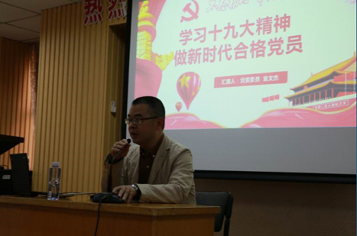 院党委结合开展“大学习、大调研、大落实”活动,深入开展宣讲宣传习近平新时代中国特色社会主义思想,持续推进“两学一做”学习教育常态化制度化。11月29日下午,院党委委员、医教部主任章文杰在建邦大厦301会议室为全院党员上了一堂主题为“学习十九大精神,做新时代合格党员”党课。章文杰通过自己的见解详细讲解了十九大的意义和十九大对党员提出的新要求。特别结合新党章内容,提出践行四讲四有,做新时代合格党员。