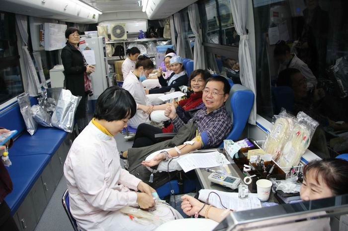 活动当天,虽然时值隆冬,天气严寒,但是却丝毫阻挡不了广大职工的献血热情。一大早,党委书记、院长魏真就亲临现场组织动员,陈榕珍副院长和黄守勤副院长率先垂范、带头献血。陈榕珍副院长高高挽起衣袖,微笑着说:“献血对身体没有害处,又能救人。同时,血液不献出去,也会新陈代谢掉。作为医务人员,积极献血就是希望消除社会大众的献血顾虑。”
