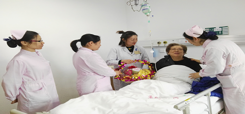 “李爷爷,生日快乐!”“祝李爷爷健康长寿!”......”12月 12日,在这样一个寒冷的冬季里、一股暖流悄悄涌入七区病房,一阵欢乐、悠扬的生日快乐歌缓缓响起,原来今天是19床离休老干部,李老的 90大寿,病区全体医护人员、病人家属轻轻唱着生日歌,缓缓推着生日蛋糕,暖暖捧着鲜花,为他庆祝 90岁的生日。