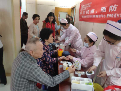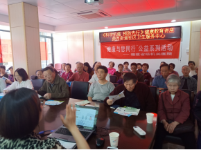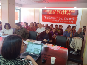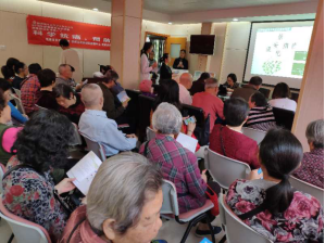 系列活动二:现场发放宣传页200余份,给听课居民发放宣传品。讲座后国产自拍av的各专科小组长为居民免费测血压、测血糖并提供相关健康咨询。