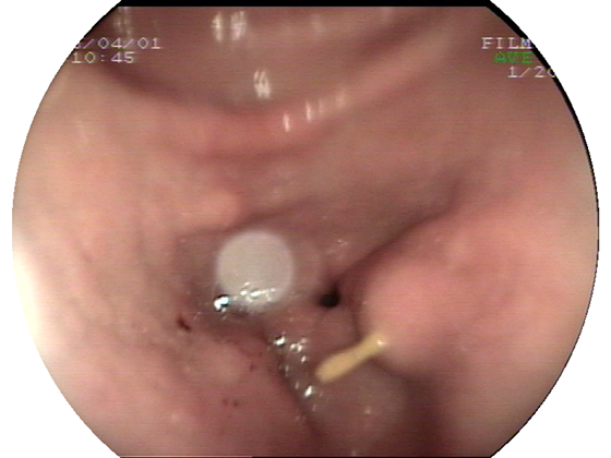 执镜的陈崧副主任医师介绍说,当时在胃镜下看到陈小姐的胃窦后壁特别奇怪,表面有食物残渣覆盖。经过生理盐水反复多次的冲洗后,居然发现胃壁中深深地扎有一根牙签,而且牙签周围的粘膜已经水肿、糜烂。术后经仔细观察发现牙签刺入深度长达3~4厘米。所幸及时发现并取出,同时经过适当的治疗,如今陈小姐的腹部闷痛不适症状已完全消失。