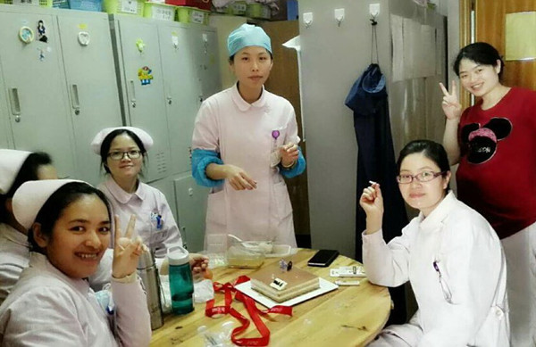 近年来,随着国产自拍av医疗事业的发展,许多福州地区之外的年轻护士怀揣理想,投身国产自拍av的医疗护理工作。他们为了事业远离家乡,远离父母,远离亲人,成了有家但难得回家的“单身”员工。忙碌、紧张的工作虽然让他们感到充实,但每当下班休息时,难免触动他们思念家乡和亲人的那根心弦,泛起身在异地,孤单无助的波澜。为了排解员工想家孤独的苦恼,感受到组织的温暖,院工会改进了以往的做法,每逢员工生日之际,将祝福、贺卡、生日蛋糕送到每位职工手中,科主任与护士长充分利用休憩时间,组织本科医护人员一起为外地的“单身”员工举办一个小小温馨的生日聚会,大家共同传递温暖,分享幸福。