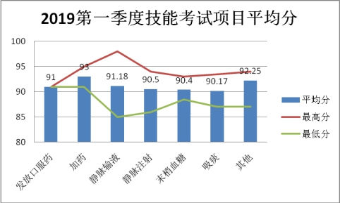 2019年考核培训督导小组在2018年的基础上,根据反馈进行了人员安排调整,将月考核安排调整为季度考核安排,按临床工作时间制定考核计划,调整考核方案,考核内容包括:输液、发放口服药、测量末梢血糖 、洗手、吸氧、测量血压等等。