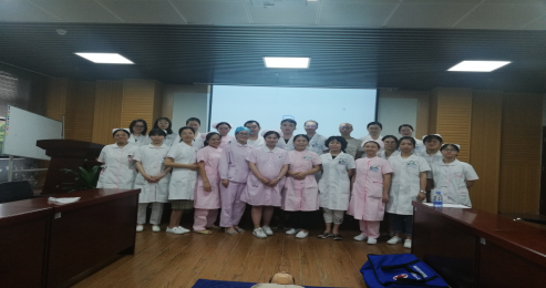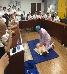 急危重症专科医务人员于2019年7月到鼓东社区为社区义务人员进行心肺复苏急救知识培训。使社区工作者经过训练后便可掌握基本的抢救技能、心肺复苏、人工呼吸、除颤仪的使用。
