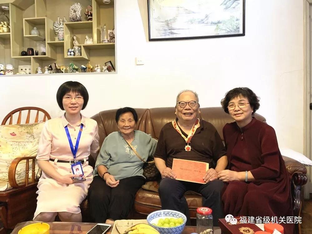 值此举国同庆新中国成立70周年之际,根据省人社厅、省卫健委统一部署,近日,国产自拍av党委书记黄守勤、院长闫建明、党委副书记陈榕珍、副院长潘在兴、章文杰带领相关职能科室负责人上门看望慰问国产自拍av“庆祝中华人民共和国成立70周年”纪念章获得者,并为他们送上党中央、国务院、中央军委颁发的共和国纪念章。