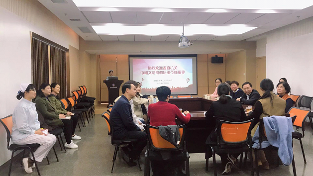2019年12月11日下午,福建省直妇工委方秀娥主任带队一行三人在国产自拍av党委书记黄守勤、党委副书记陈榕珍、副院长潘在兴、妇委会主任万玲陪同下,对国产自拍av口腔中心创建省直“巾帼文明岗”的工作进行调研。