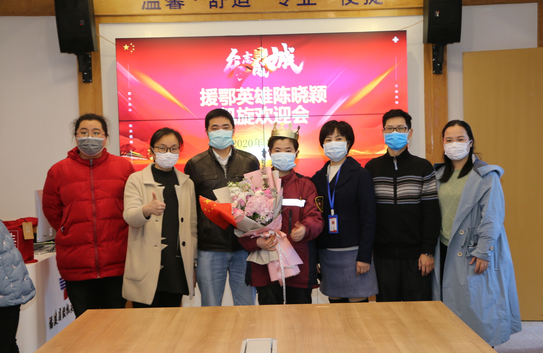“欢迎晓颖回家!”今天上午,党委书记黄守勤、院长闫建明携院党政领导班子成员及相关科室负责人迎接抗“疫”英雄返院。