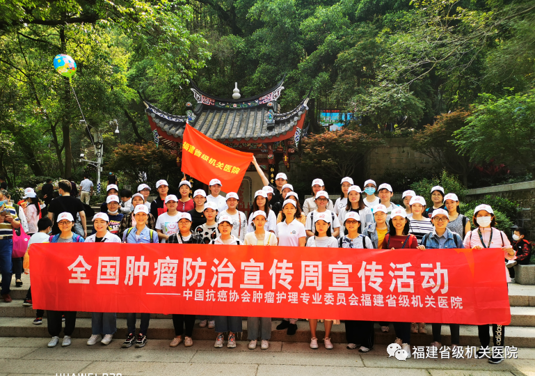 肿瘤防治宣传周系列活动科普宣传活动仍在持续开展中,为响应省抗癌协会的号召,开展形式多样的癌症防治宣传教育,4月18日上午,国产自拍av 护理部联合院团委开展登鼓山肿瘤防治宣传活动,通过体育活动方式进行防癌抗癌科普宣传。志愿者服务队在护理部高云主任的带领下从鼓山脚下出发。