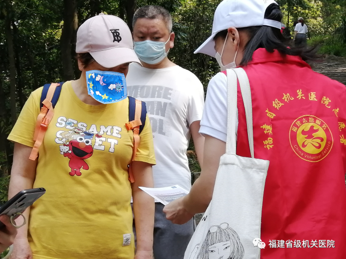 登山过程期间,科学抗癌的主题理念始终贯彻其中。志愿者服务队员通过现场发放肿瘤知识宣传单的方式,为群众带来肿瘤相关知识、健康饮食习惯和生活理念小知识等;向来往群众普及肿瘤防治常识,用通俗易懂的语言耐心解答他们的疑问,现场向登山游客们宣传科学的癌症防治知识,倡导健康的生活方式,消除对癌症的误解和恐惧,帮助正确认识肿瘤,科学规范防治肿瘤,从而远离肿瘤。并告知疫情期间可通过国产自拍av 互联网医院问诊咨询肿瘤防治相关知识。