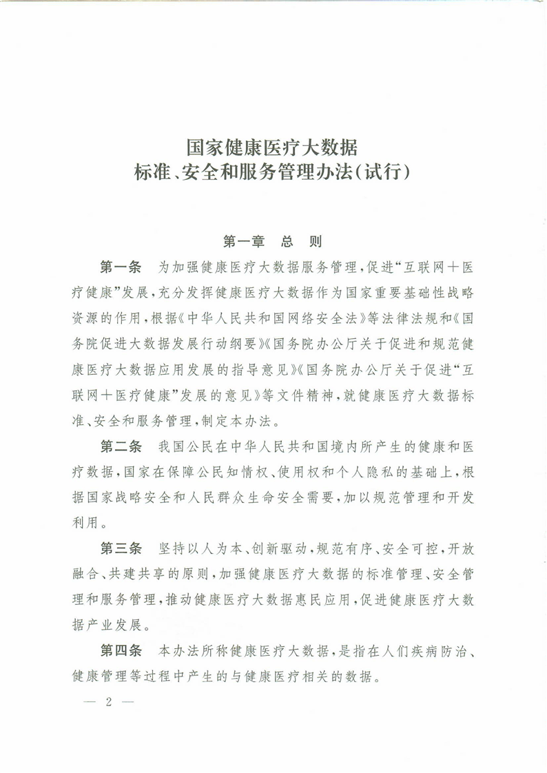 国家健康医疗大数据标准、安全服务和管理办法(试行)