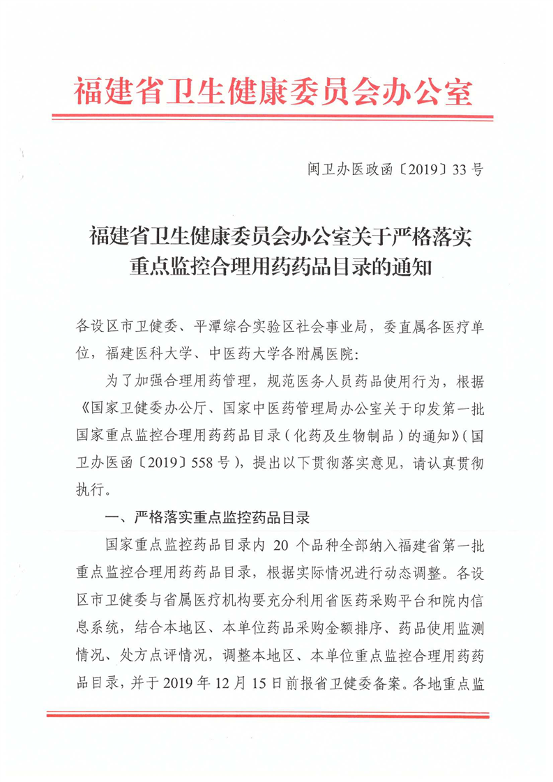 关于严格落实重点监控合理用药药品目录的通知