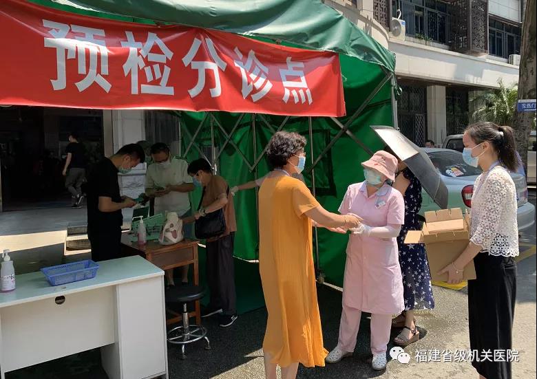 陈榕珍主席向预检分诊点的工作人员询问疫情防控工作开展情况及工作中遇到的困难,对他们表示亲切慰问,并送上消暑饮品,为他们送去丝丝清凉。