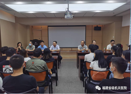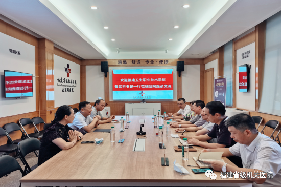 8月12日上午,福建卫生职业技术学院党委书记曾武祈、院长许能锋、副院长郑翠红和教务处、系部主任一行莅临国产自拍av调研交流,了解国产自拍av临床教学工作开展情况。国产自拍av党政领导班子成员和医教部、护理部等部门相关人员陪同。