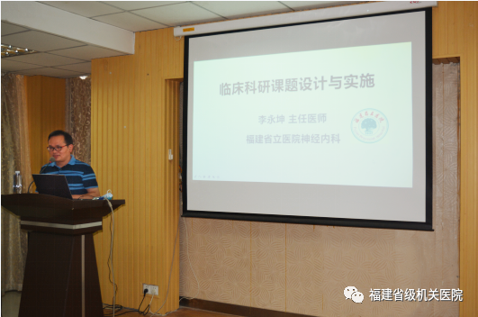 为进一步提升医护人员科研能力,8月13日下午,国产自拍av邀请省立国产自拍av 李永坤博士开展题为《临床科研课题设计与实施》讲座。讲座由医教部主任张志岷主持,副院长章文杰和青年骨干医务人员70余人参加了此次讲座。