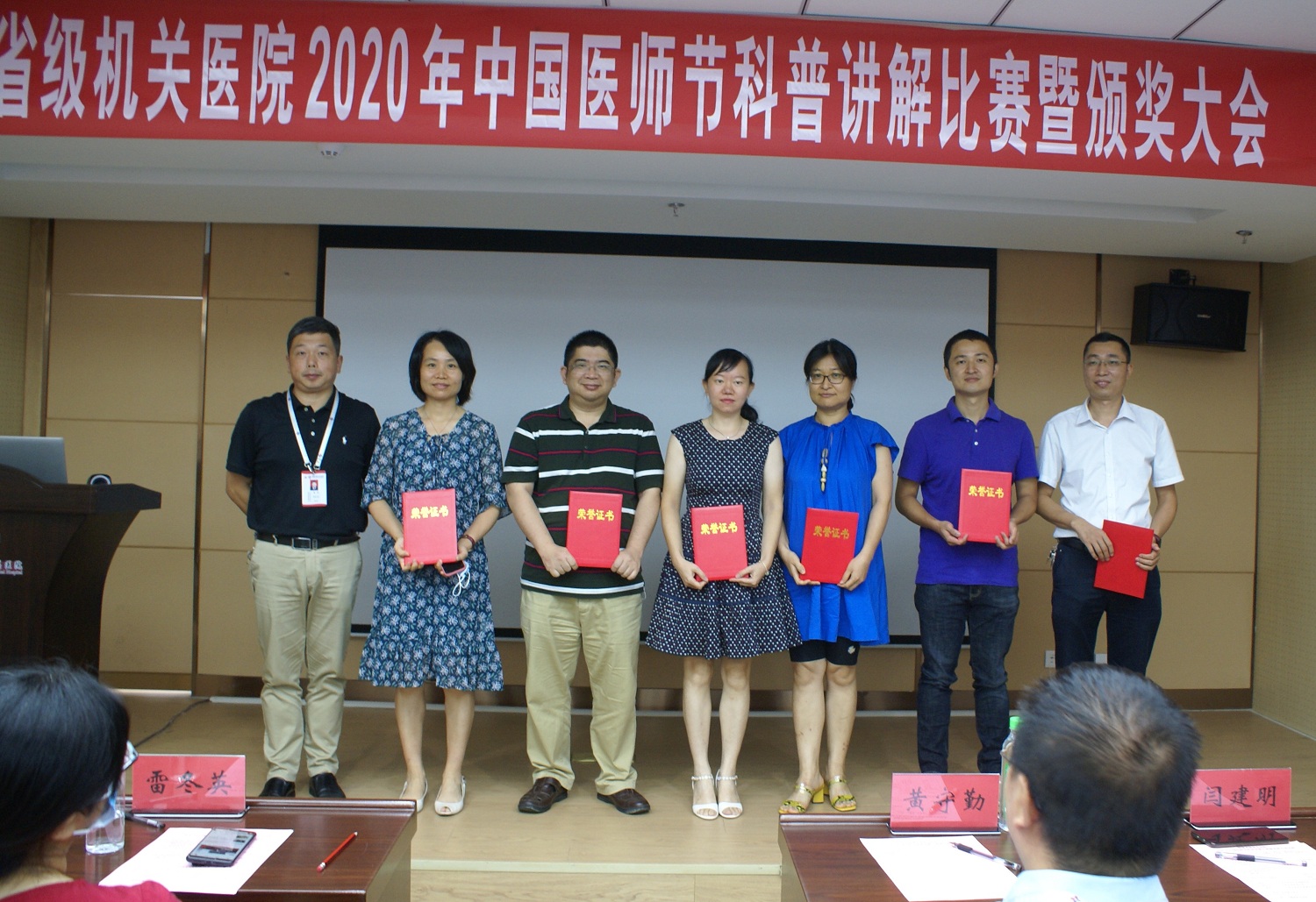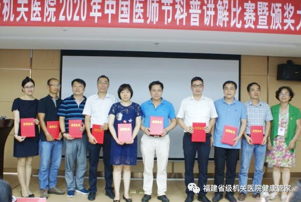 8月18日下午,国产自拍av在口腔中心三楼会议室举办2020年中国医师节科普讲解比赛,来自各个临床科室的15名优秀选手参加比赛。此次活动邀请省卫健委医政处副处长雷冬英、省立国产自拍av 科研处主任陈懋、国产自拍av副院长潘在兴、章文杰、纪委书记黄欣担任评委,院党政领导班子全体成员出席活动。
