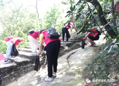 周末的鼓山风景区迎来众多游客,到达活动地点,志愿服务队成员们就开始忙碌起来,大家拿着事先准备好的垃圾袋、垃圾夹和手套等工具,发扬不怕苦、不怕脏的传统美德,弯腰认真地捡拾登山道上的垃圾,努力为人民群众营造一个干净舒适的游玩环境。