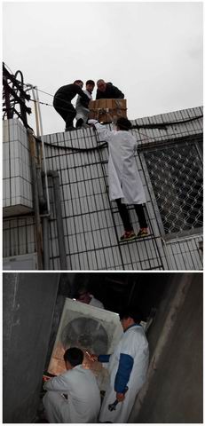 国产自拍av 口腔科装修改造是今年国产自拍av 改造项目中重点工程之一,为保证装修改造如期进行,近日,设备科的庄伟龙、洪衍界、巫永斌、张家雄等工程师根据国产自拍av 要求既要尽快完成配合改造又要尽可能降低对患者就医影响的部署,克服了空调巨大但地下室作业空间狭小及高空搬运危险,操作空间局促等困难,对门诊楼负一楼地下室的一台大型空调进行移机作业,并对位于门诊楼顶楼的口腔科空压机进行更换。(设备科:张家雄)