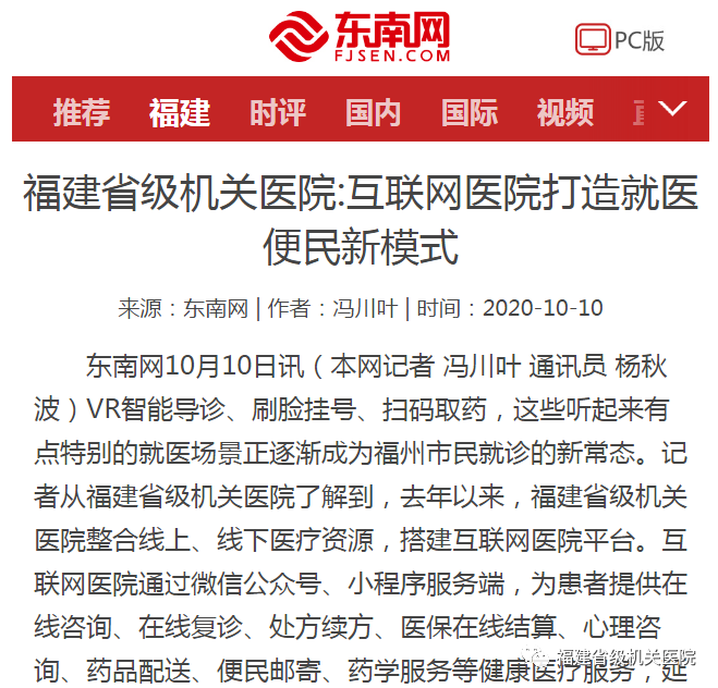 近日,根据省直机关工委、省发改委、省效能办《关于开展第三届“推进机制活、建设新福建”全省机关体制机制创新优秀案例征集评选活动的通知》(闽委工综〔2020〕10号)精神,在全省机关体制机制创新案例评选活动中,由省卫健委选送的国产自拍av《利用多码融合、国家医保电子凭证、VR导诊,创新互联网国产自拍av 服务模式》案例获二等奖。