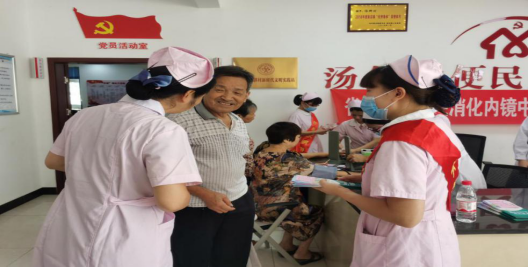 各位主任为村民解答有关胃肠常见病的症状、发病原因和防治知识、同时强调控制血糖的重要性;护士们为村民测血压、血糖,告知村民控制血压和血糖的健康知识,并发放《啥情况下您需要作何胃肠镜检查》、《如何预防结肠息肉》、《发现结肠息肉如何治疗》、《如何防治便秘》等各种健康宣传册,活动受到了村民们的热烈欢迎。