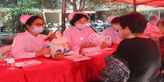 的的医护人员到现场参加义诊咨询活动,9点不到,前来排队咨询就诊的群众络绎不绝,临床护理专家们认真细致为群众进行糖尿病相关健康指导,鼓楼疾控的专家现场为群众提供咨询,并分发宣传材料和健康工具等小礼品。