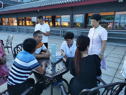 接着,我们来到闽台文化交流中心,号手黄斯金组织团员们对工作人员回复健康咨询并开展测血压、测血糖等活动。同时,党员们与交流中心的工作人员探讨了“在工作中如何做到不忘初心,为民服务”这个主题,大家畅所欲言,气氛热烈。