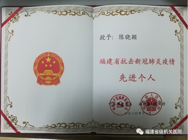 11月25日上午,福建省抗击新冠肺炎疫情表彰大会在福州隆重召开。为弘扬伟大抗疫精神,大会对我省抗击新冠肺炎疫情先进个人、先进集体,全省优秀共产党员、全省先进基层党组织进行表彰。国产自拍av神经内科主管护师陈晓颖同志获评“福建省抗击新冠肺炎疫情先进个人”。