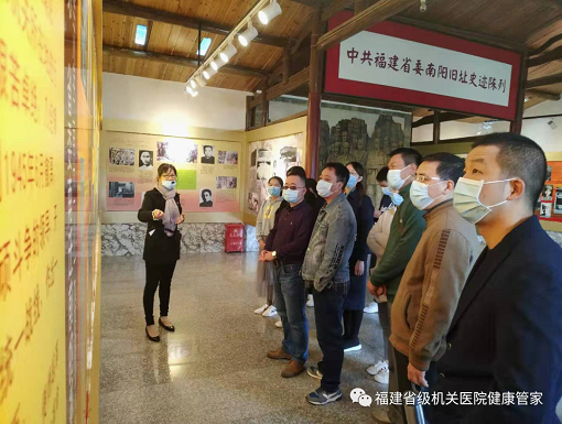 在南阳山省委旧址,全体党员踏寻先烈足迹,感悟先烈精神。在中共福建省委旧址陈列室解说人员的热忱讲解下,党员们瞻仰了革命战争年代的图片,走进半个多世纪前的那段历史,去叩访那些尊敬的先烈,去拜谒那些高尚的心灵。昔日的硝烟早已散尽,大家眼前依然跃动着雄壮的队伍和矫健的身影。