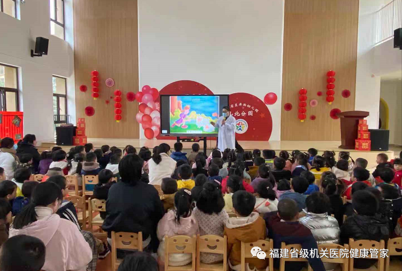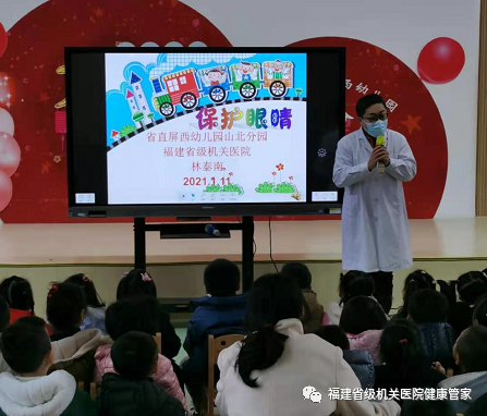 1月11号,国产自拍av“健康与您同行”公益宣传活动走进福建省直屏西幼儿园山北分园。眼科副主任医师林泰南为山北分园的孩子们带来了“保护眼睛”专题讲座活动。
