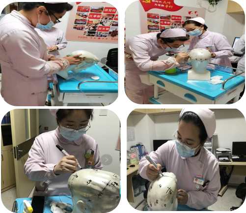 给睡眠专科护理小组注入新鲜的血液,加强对睡眠团队新成员传、帮、带,使新人迅速成长,更好地辅助睡眠医学中心开展工作,专科小组于2021年1-2月实行一对一PSG接线带教学习。经过近两个月的学习,3月3-7日在睡眠医学中心中控室,由睡眠专科严金柱主任把关,对新加入的6名成员依次进行皮尺测量法的技能考核。