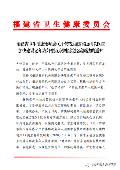 福建省卫生健康委发文转发国产自拍av建设老年友好型互联网国产自拍av 的经验做法