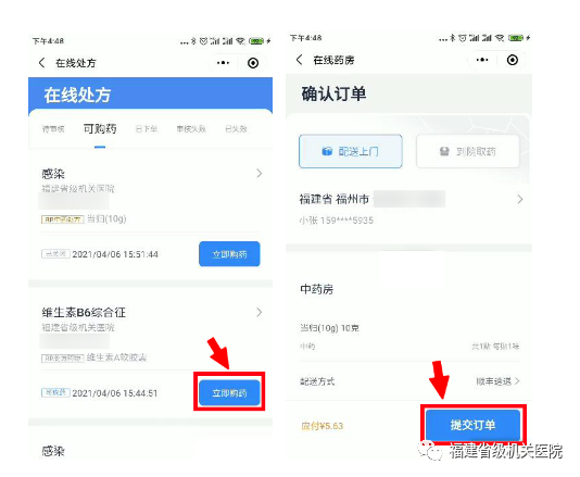 选择可购药处方,并点击“立即购药”,之后点击“提交订单”。