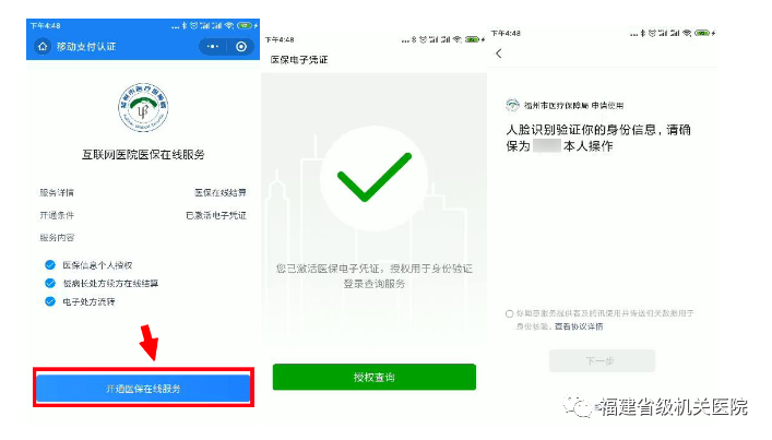点击“开通医保在线服务”,之后激活医保电子凭证,并进行人脸识别。