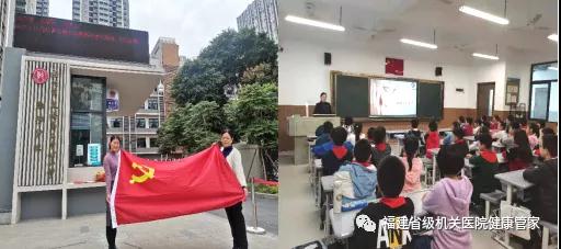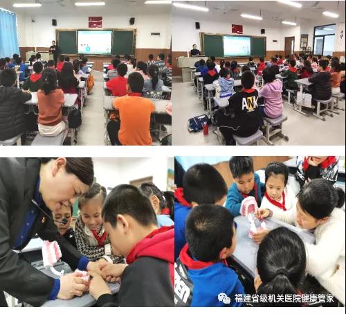 4月16日下午,口腔科党支部书记张虹带领口腔专科护理成员来到福州市鼓楼第二中心小学教场分校开展小学生口腔保健知识讲座。