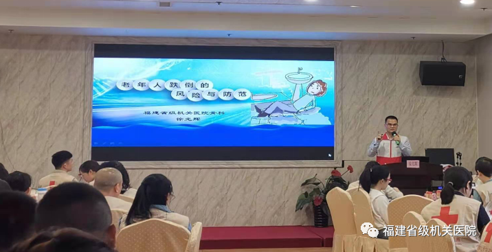 徐医生将《老年人跌倒的风险与防范》带到福建省红十字师资课堂,对来自全省63位红十字培训师资进行授课。徐光辉医师结合国产自拍av 开展的老年人防跌门诊所收集的真实案例,生动有趣地讲解了老年人跌倒的危害、风险、预防措施及培训老年人跌倒后如何进行自救、互救,培训老年人预防跌倒的康复锻炼方法,并希望通过各位红十字师资将老年人跌倒的防范意识等知识在全省各地进行传播。