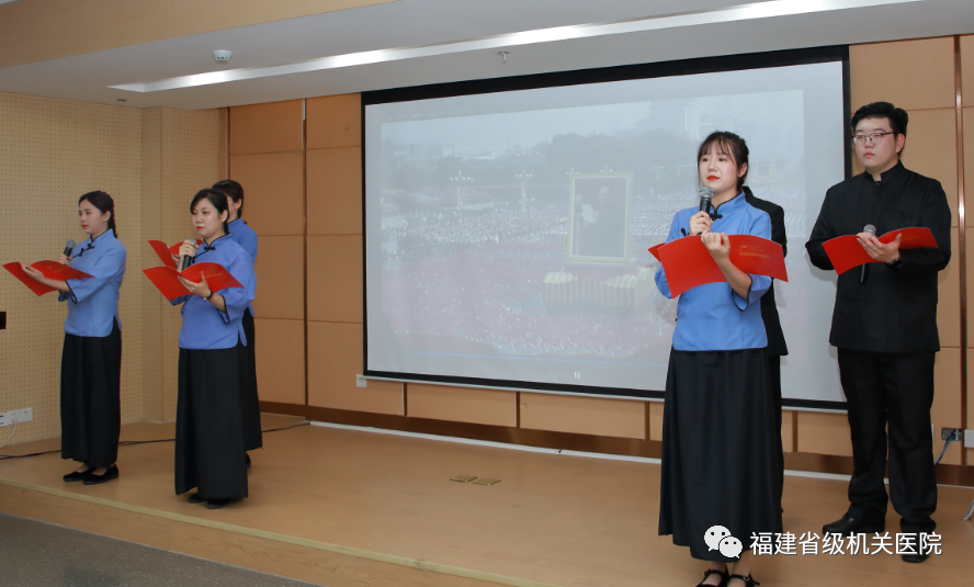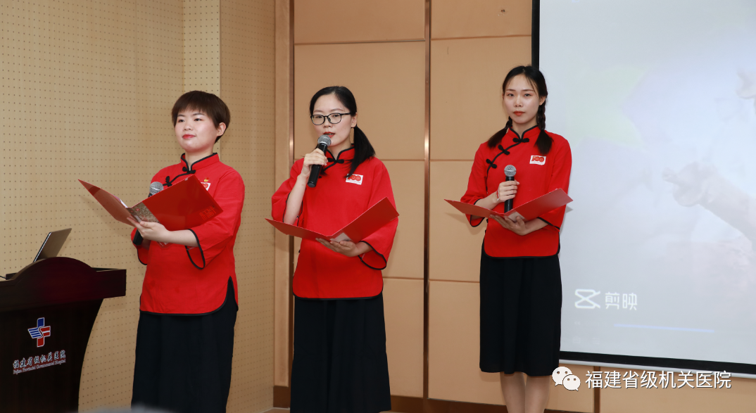 16组选手们通过独诵、合诵等方式用饱含深情和温度的诵读展现百年党史的波澜壮阔,一篇篇不朽的诗文,一段段不可磨灭的红色记忆,抒发了医务工作者们对党和国家的无限热爱,对医疗事业的忠诚,也引发了在场所有人员的深深共鸣,令党史学习教育更接地气、更“声”入人心。