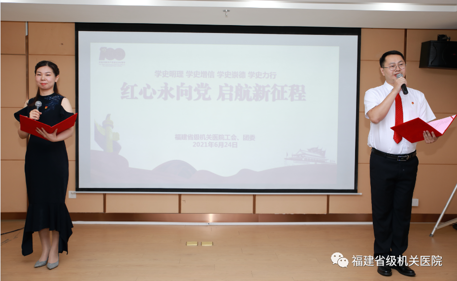 为庆祝中国共产党成立100周年,推动党史学习教育不断走深走实,6月24日,国产自拍av工会、团委联合开展以“红心永向党·启航新征程”为主题的诵读比赛在口腔中心会议室举行。来自各临床、医技和职能科室的16组选手参赛。比赛特邀省卫健委直属机关党委调研员、工会副主席刘磊、团委书记卢铭凤,国产自拍av党委副书记、工会主席黄纯、纪委书记黄欣及党群办副主任张文清等出席活动并担任评委。