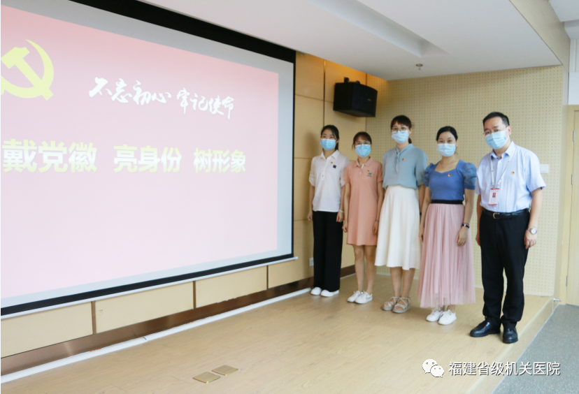 党委书记黄守勤为2021年新发展的党员佩戴党徽