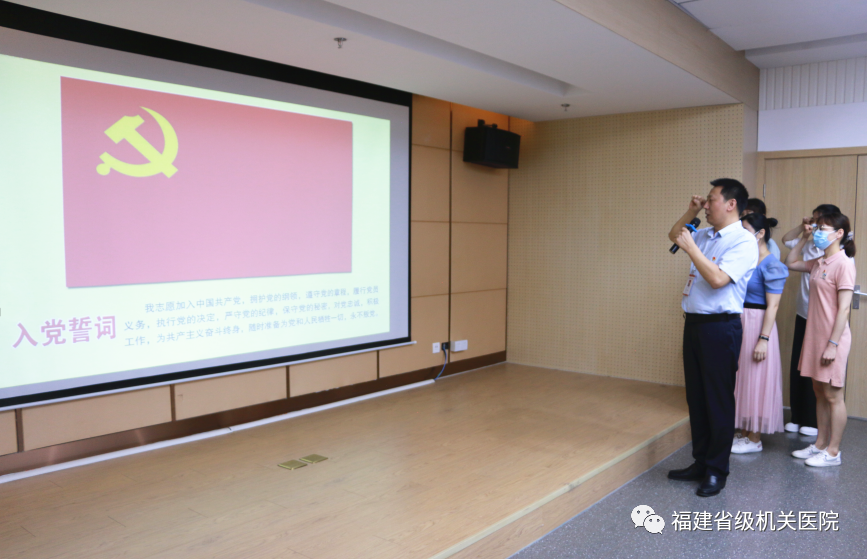在党委副书记黄纯同志的带领下,新党员进行入党宣誓,4名新党员紧握右拳,面对鲜红的党旗许下了神圣的誓言。与会党员一起重温了入党誓词。