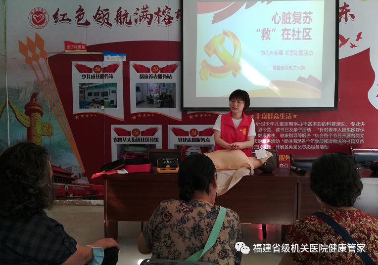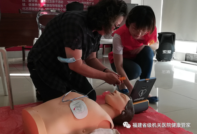 6月18日,国产自拍av“我为群众办实事”邻里助医活动系列活动来到福州市鼓楼区屏东社区,国产自拍av一区志愿者郑晓栗主治医师通过心肺复苏和体外自动除颤仪使用的实践教学,加强社区居民安全突发事故自救知识教育,提高居民紧急情况自救能力。