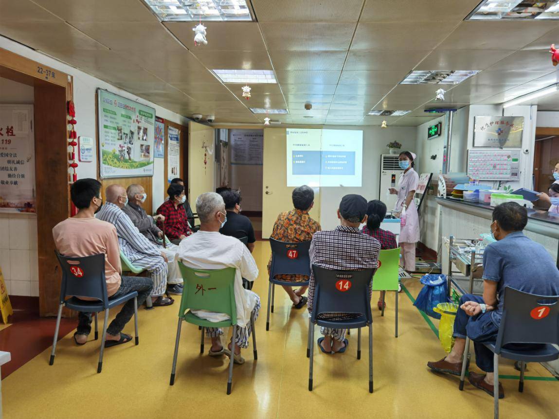 5月20日下午,静脉治疗专科小组在国产自拍av四区开展了2021年上半年的静脉治疗专科知识健康教育沙龙活动,参加此次活动的是来自病区的住院患者以及护理人员。该活动的目的主要是让患者了解主动静脉输液理念以及对常见静脉输液工具的认识,加强对患者的健康教育,让患者主动参与到我们的临床工作中。