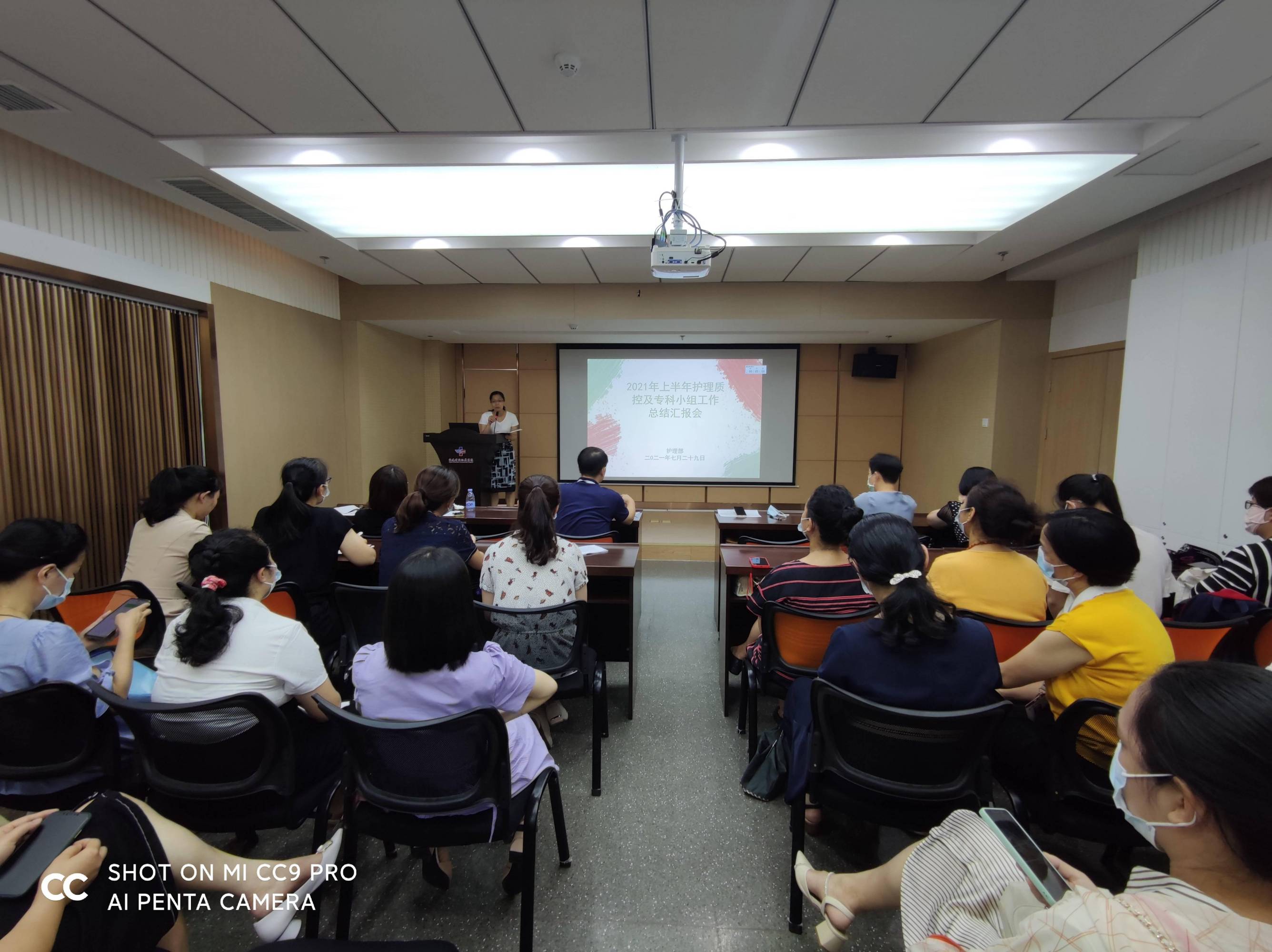 首先,进行护理质量、教学、绩效专题汇报:①护理部副主任杨佳玲做《2021年上半年护理质量控制分析》工作报告。在肯定成绩中坚定信心、在正视问题中整改提升;在梳理任务中抓住重点、在推进工作中细化措施;在夯实责任中担当作为、在创造业绩中狠抓落实三个层面,全面总结了上半年的工作成绩,客观指出了上半年质控中存在的问题和暴露出的短板,对各科室各项具体指标进行了横向纵向比。并对各专科、各质控组的质控内容进行分析。系统安排了下半年的重点工作任务,着重提出了冲刺年度目标的方法举措。②随后质量督导郑小薇护士长对上半年的三级查房及护理行政查房主要内容进行了分析,对一级、二级层面PDCA持续改进项目进行了整理概括,③接着罗坤金护士长代表绩效组对上半年绩效安全与绩效管理进行了详细的汇报,④最后吴雪莹代表教学与科研组对上半年分层培训理论及技能考核成绩进行了分析,也对上半年论文发表情况及课题申报等科研方面进行了总结。
