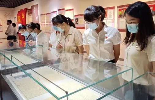 党员干部紧跟讲解员的步伐,在一幅幅鲜活的文字、图片档案文献前驻足凝视,细细品读交流,深刻感悟中国共产党人的初心使命,真切感悟伟大建党精神的强大力量,接受深刻的思想洗礼和党性锤炼。